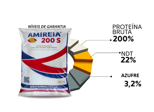 Amireia 200S es una fuente de nitrógeno no proteico (NNP) de liberación controlada, desarrollada en Brasil para mejorar la eficiencia del rumen en bovinos de leche, recría y engorde. Su formulación combina urea pecuaria protegida con almidón extruido y azufre, lo que permite una liberación gradual del nitrógeno, asegurando un aprovechamiento sostenido por parte de la microbiota ruminal.
